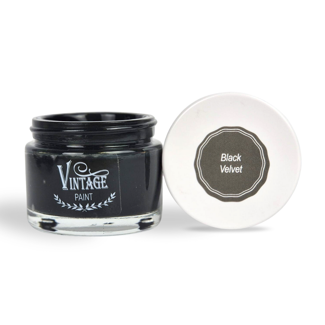Black Velvet Vintage Paint kredna boja je prirodna i ekološki prihvatljiva boja bez mirisa, amonijaka ili akrila. Boja je prikladna za razne vrste površina: namještaj, zidove, drvo, kamen, staklo, metal, keramiku…
