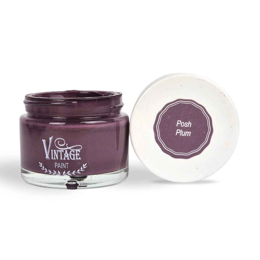 Posh Plum Vintage Paint kredna boja je prirodna i ekološki prihvatljiva boja bez mirisa, amonijaka ili akrila. Boja je prikladna za razne vrste površina: namještaj, zidove, drvo, kamen, staklo, metal, keramiku…
